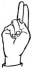 На ћирилици написано МОМЧИЛО ДАБИЋ састоји се из 12 слова [?]. Исписано ћириличном једноручном азбуком за глувонеме: